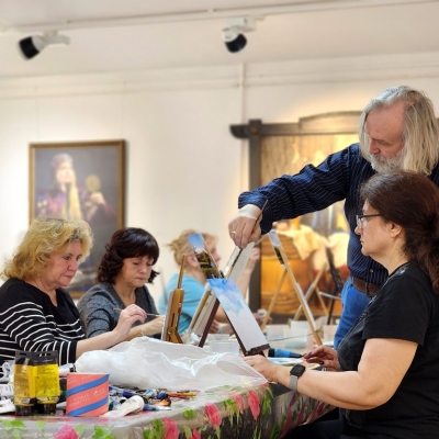 17 февраля в 16-00 в рамках выставки «Новые горизонты» в МУК «Музейно-выставочный центр» ул. Победы, д.2 состоялся мастер-класс преподавателей Российской Академии живописи, ваяния и зодчества Ильи Глазунова.