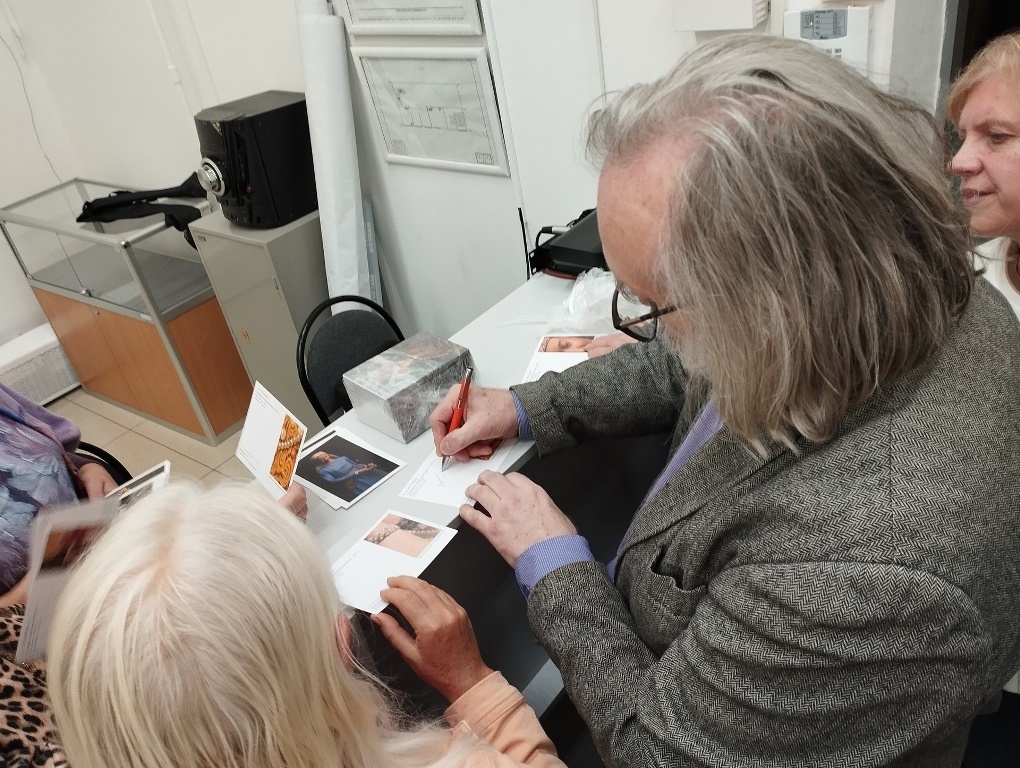 На торжественном открытии художник провел авторскую экскурсию по экспозиции, а завершилась встреча автограф-сессией: каждый посетитель мог получить фотографию работы Артемьева с его подписью.