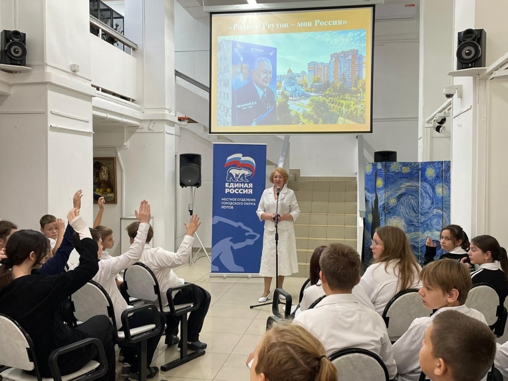 Совместно с местным отделением партии «Единая Россия» г.о. Реутов в Музейно-выставочном центре прошел урок в музее, посвященный дню рождения города Реутов, для учеников 6 «Г» класса школы №7. Его организовали в соответствии с партийным проектом «Малая родина», руководителем которого является секретарь первичной организации партии «Единая Россия», директор МВЦ Антонина Кошкина.