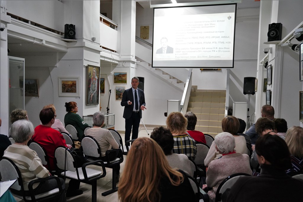 Провел ее Денис фон Мекк – потомок знаменитых семей Чайковских, Давыдовых и фон Мекк, просветитель, издатель, коллекционер, хранитель культурных ценностей, культурный дипломат с опытом выступлений в более чем 70 городах 20 стран мира.