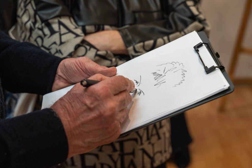 Во время торжественного открытия художник рассказал о своем творческом пути, ответил на вопросы зрителей и сделал дружеские шаржи на посетителей. которые задали ему самые интересные вопросы. Музейно-выставочному центру художник подарил книгу со своими карикатурами.