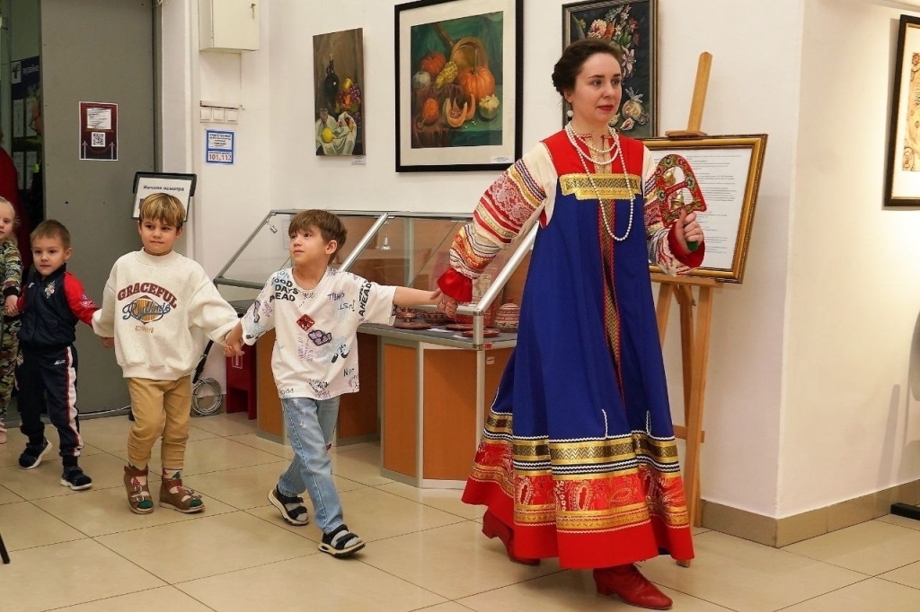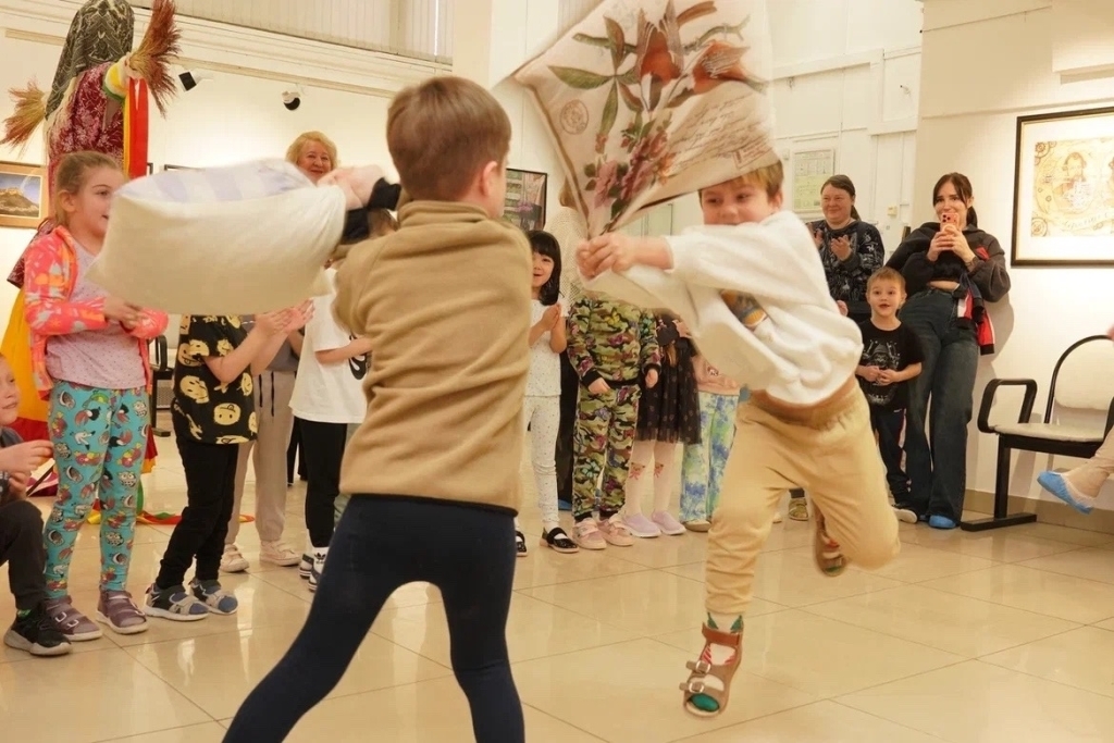 Лектор-экскурсовод Екатерина Нистряну в игровой форме познакомила малышей с традициями праздника: дети водили хороводы, пели, танцевали и даже заплетали косы чучелу Масленицы. Настоящий восторг вызвало знакомство с русскими народными инструментами — ложками, трещотками и колокольчиками.