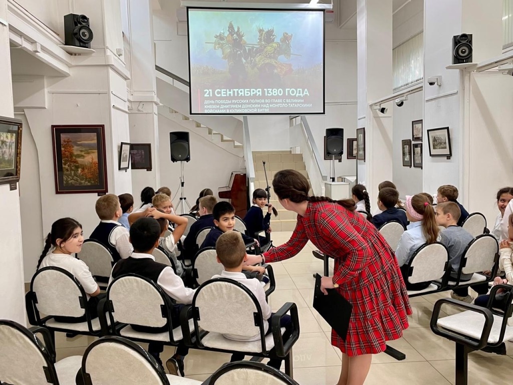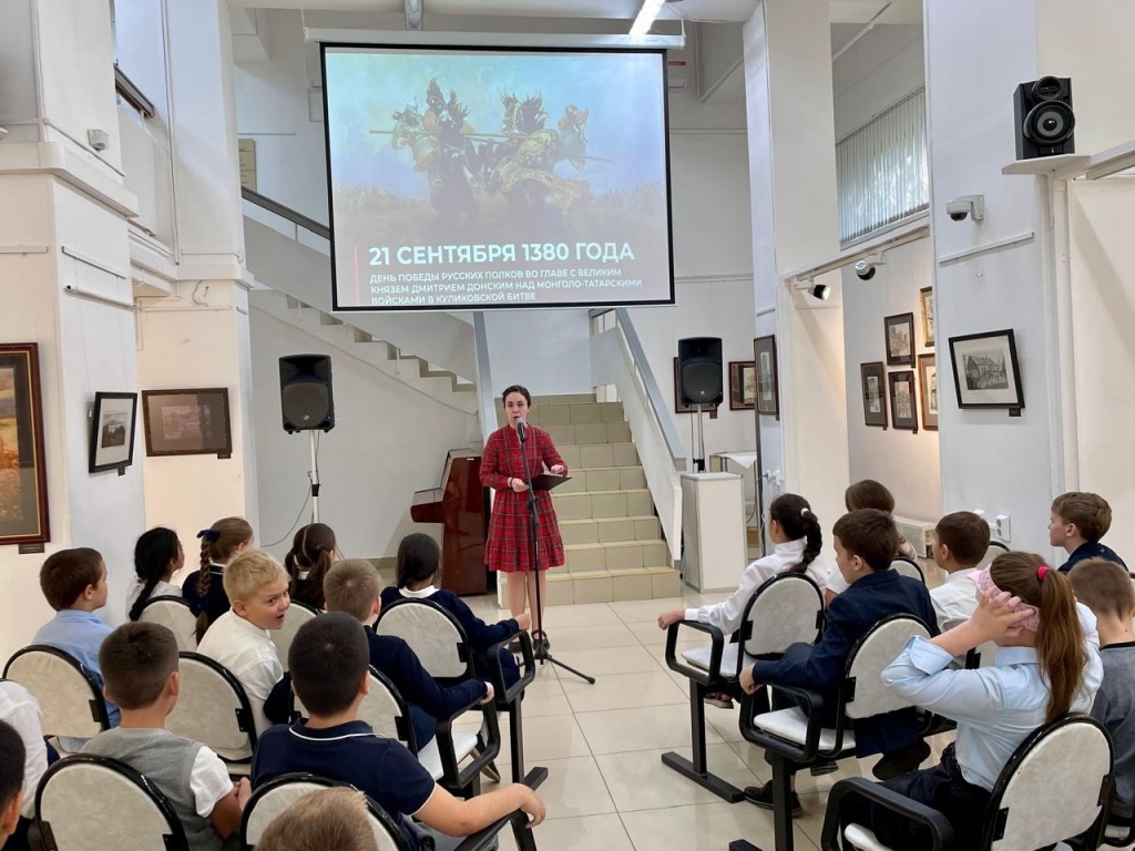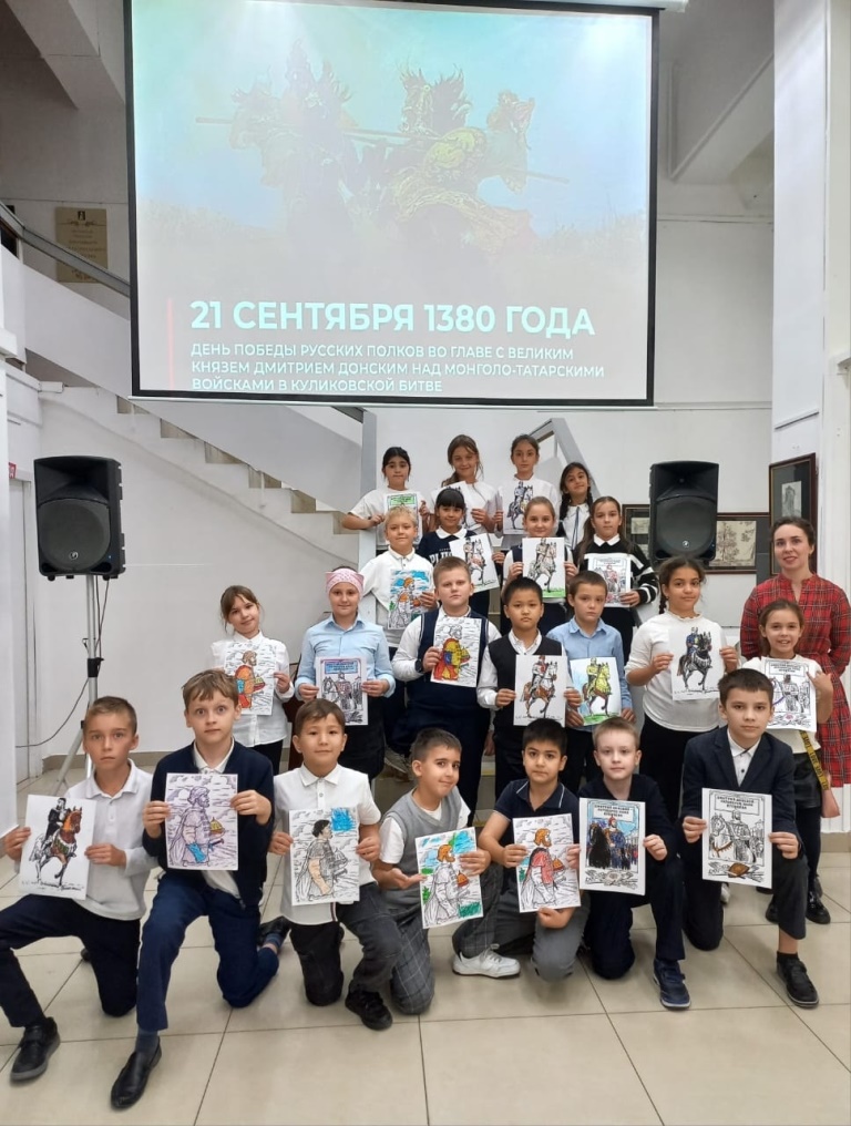 В преддверии памятной даты в Музейно-выставочном центре прошел урок в музее, посвященный Куликовской битве для третьеклассников школы №1. Ребятам рассказали о доблести великого московского князя Дмитрия Донского и его воинов, а также о значении битвы для русской истории. Затем школьники посмотрели видеоролик «Куликовская битва». В конце мероприятия школьники поучаствовали в творческом мастер-классе «Дмитрий Донской – ратоборец поля Куликова».