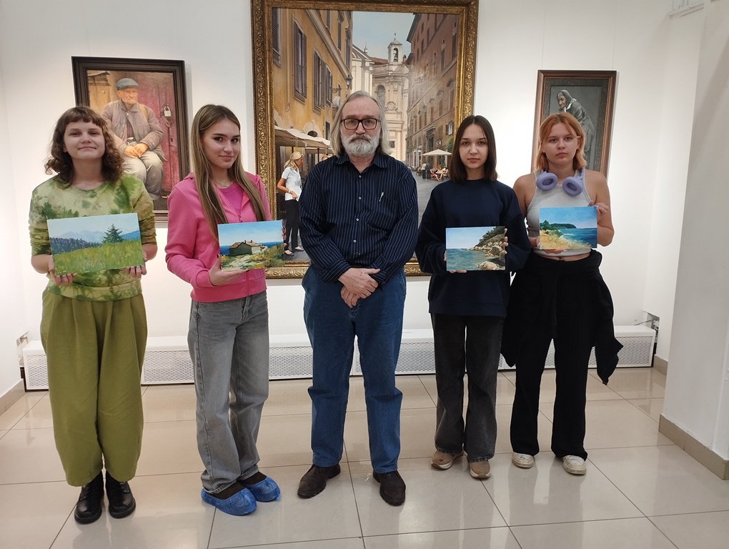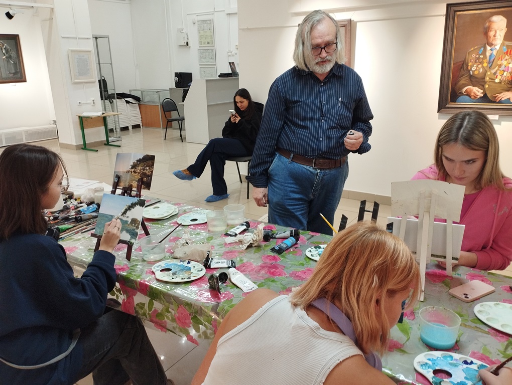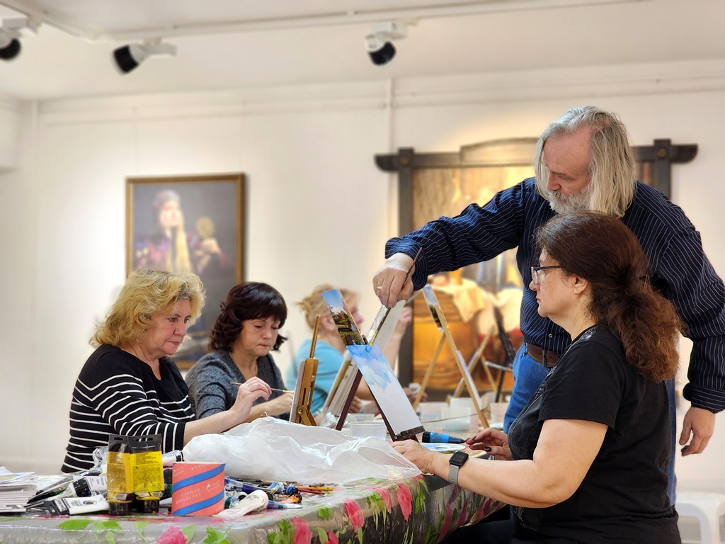 Участников мастер-класса Артемьев еще и познакомил со своей выставкой и на примере некоторых своих работ также поделился различными секретами и приемами живописи.