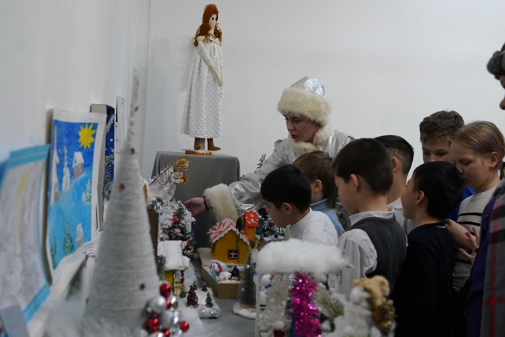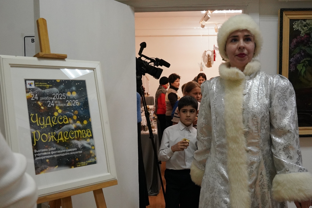 Сегодня в Музейно-выставочный центр заглянула сказочная героиня Снегурочка, ведь в камерном зале начались настоящие "Чудеса Рождества" — там открылась выставка поделок на рождественскую тему.