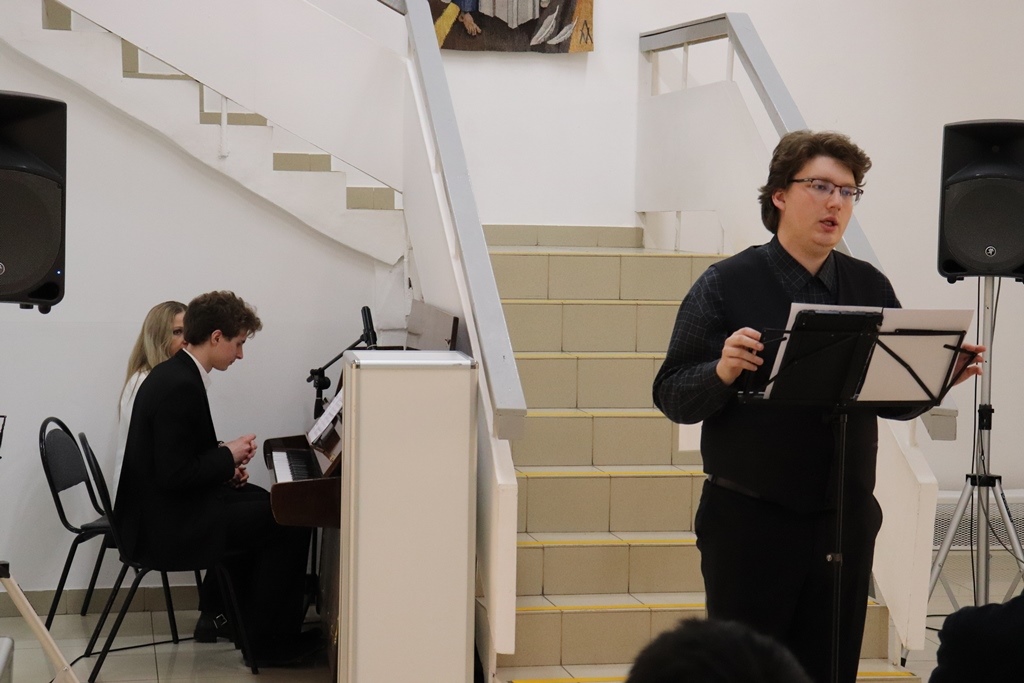 На выставках «Арт-Содружества» всегда происходит синтез различных видов искусства. Так было и в этот раз: не только живопись, графика, стекло, керамика, украшения, но и музыка звучала в день торжественного открытия. Пианист Егор Сидоров и вокалист Григорий Карпушев украсили вечер как известными музыкальными композициями, так и своей новой песней.