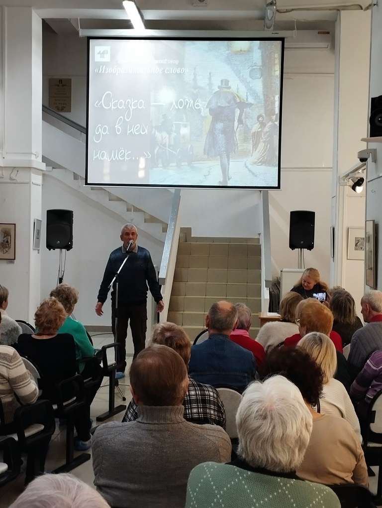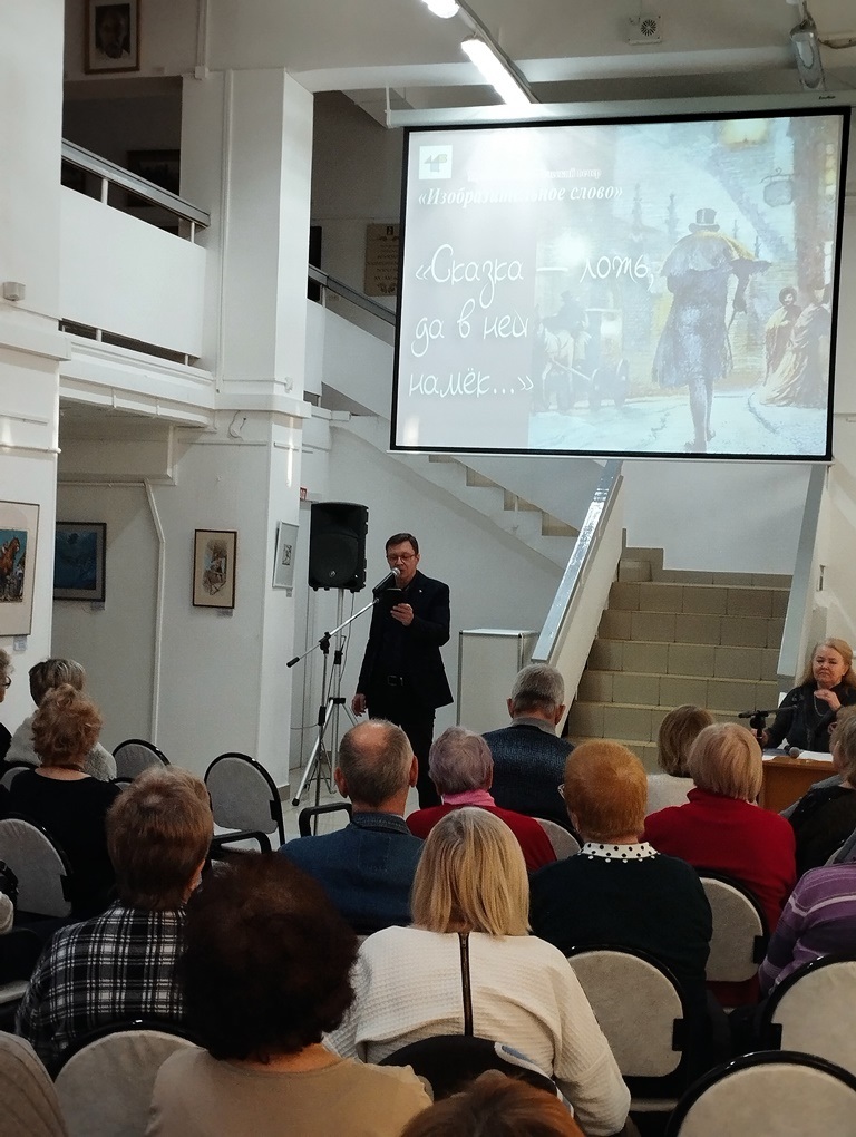"Сказка — ложь, да в ней намек..." так звучала тема вечера, который не обошел вниманием 200-летие великого сказочника и сатирика М.Е. Салтыкова-Щедрина, иллюстрации к книгам которого представлены в том числе на выставке «Мировая классическая литература в иллюстрациях», демонстрируемой сейчас в МВЦ.